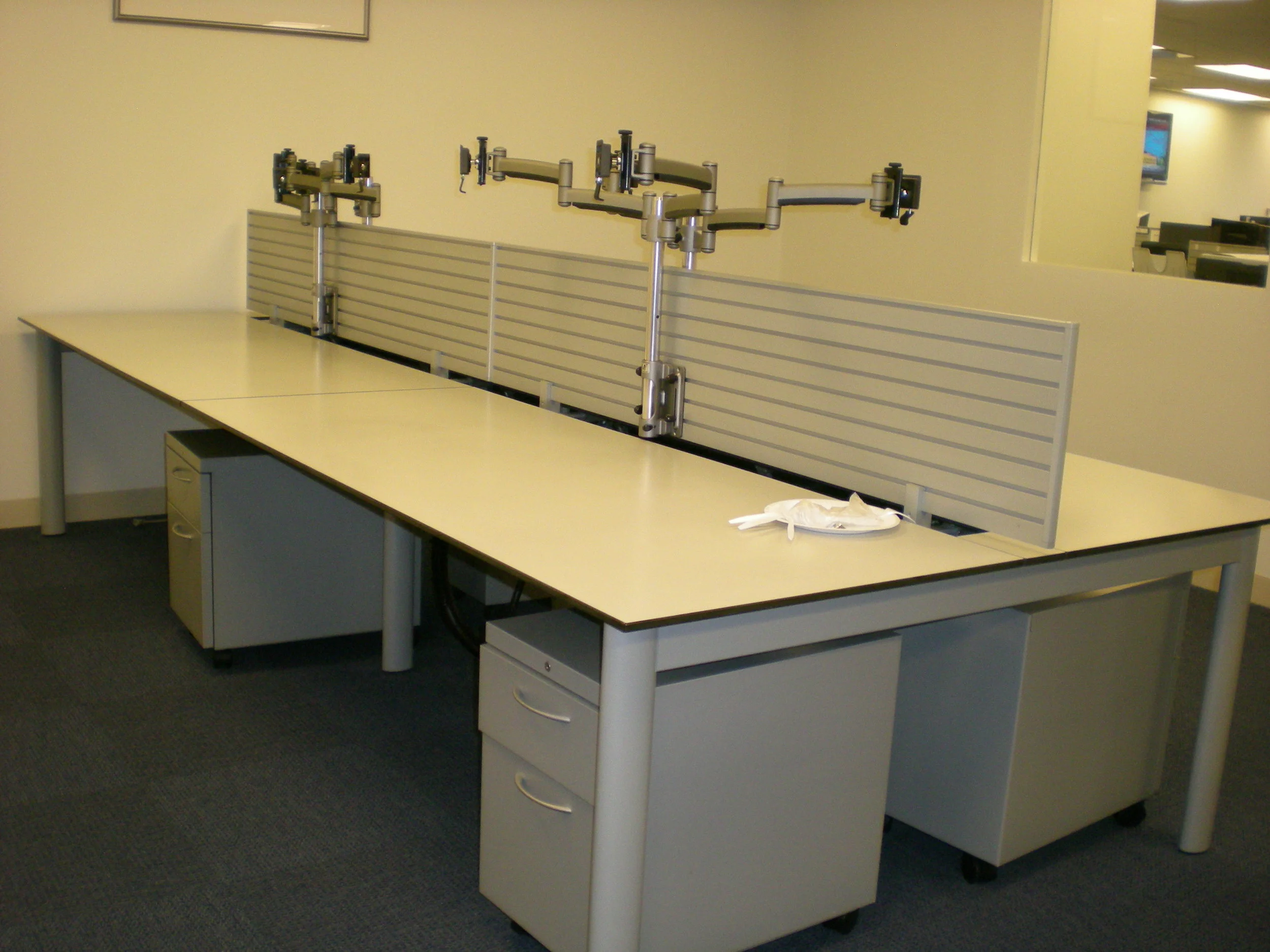 For trade desks we will look at any manufacturers. Best value is found for Innovant, LaCour, Woodtronics and the better systems form Herman Miller, Steelcase and Knoll.